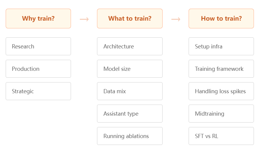 Hugging Face 团队用三个问题,把整个训练过程变成一条清晰的思考链条:为什么要训练(Why) → 训练什么(What) → 怎么训练(How)。这三个问题看似简单,却能区分“理性训练”和“盲目烧算力”的差别。