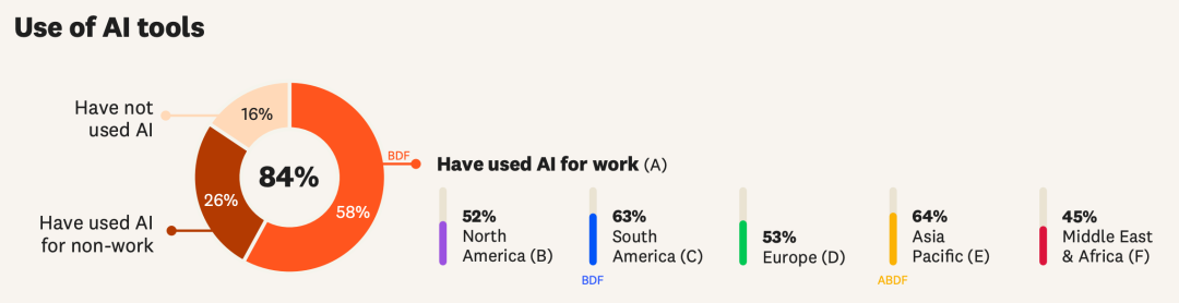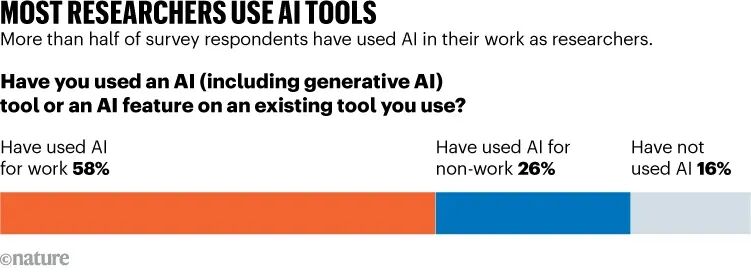 调查结果显示,58%的科研人员已在科研工作中使用AI,只有16%还未尝试。