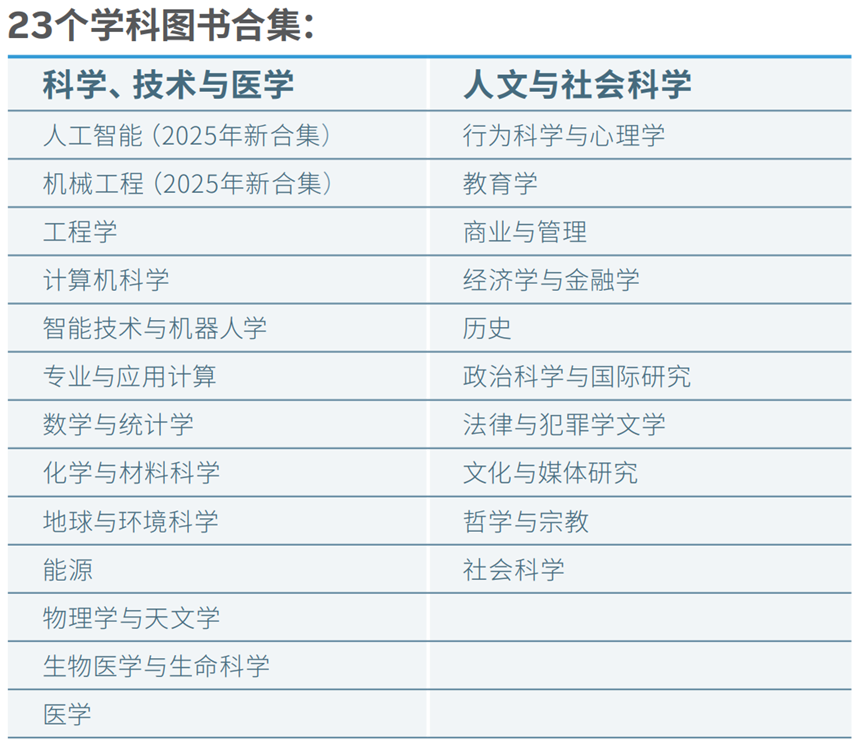 该合集包含1500多册优质图书,每年新增图书100多种。关注新兴的研究领域,包括但不限于: