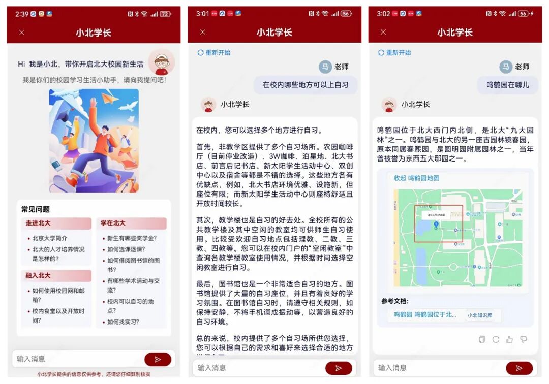 北京大学「小北学长」校园学习生活小助手的显示页面