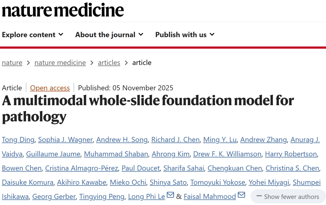 Ding, T., Wagner, S.J., Song, A.H. et al. A multimodal whole-slide foundation model for pathology. Nat Med (2025).