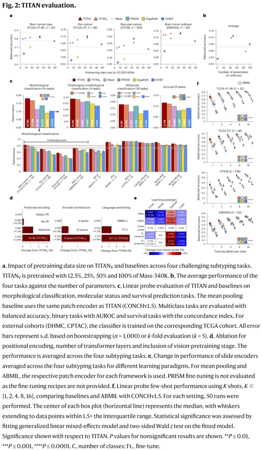 在多个公开病理数据集上,TITAN展现出优异的任务表现与泛化能力: