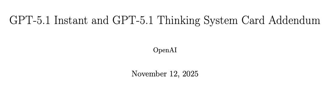 同在今天,OpenAI还发布了GPT-5.1系统卡,更多内容可参阅PDF。