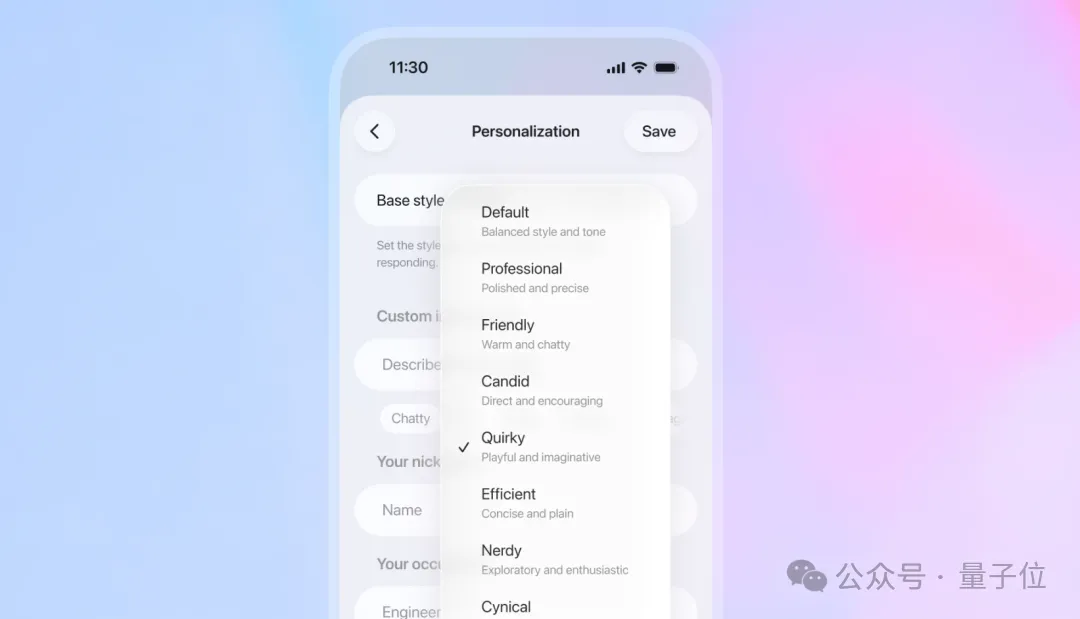 个性化模式下,用户可自由选择自己想要的 AI 人格特质: