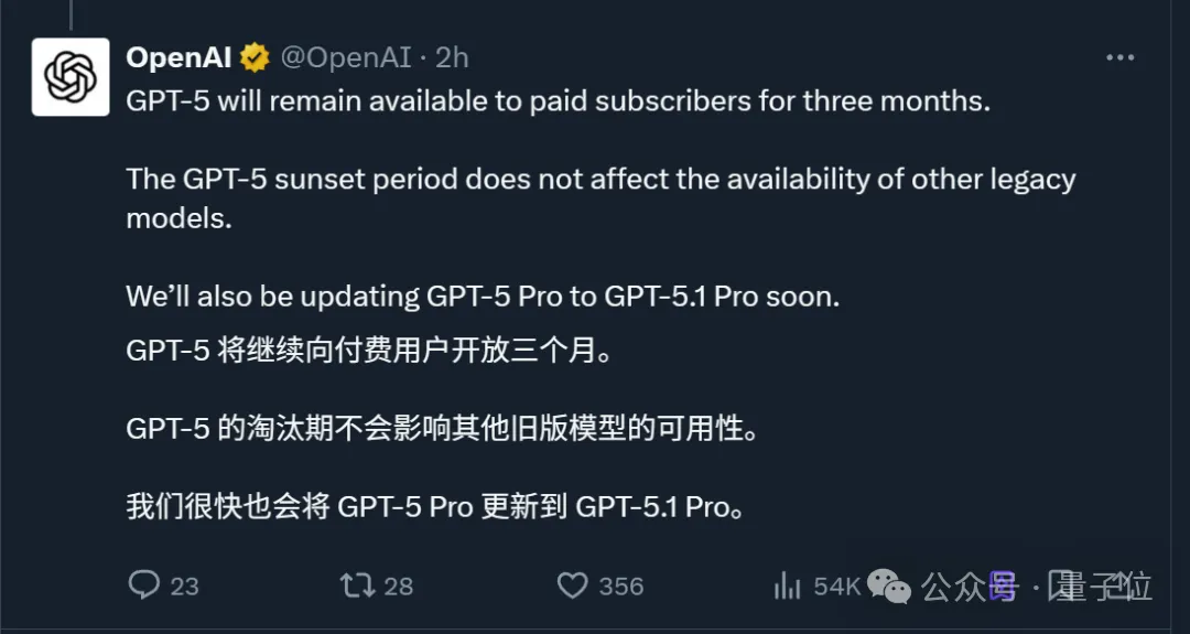 旧版本 GPT-5 将继续向付费用户开放三个月,等过渡期结束才会下架。