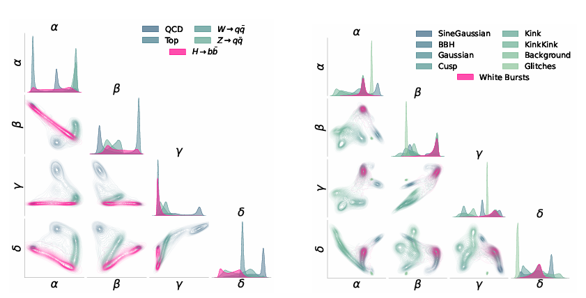 发现阶段则是在 NPLM(New Physics Learning Machine)异常检测和假设检验框架中使用前一步得到的低维嵌入,搜索数据中可能存在的「新颖信号」,并通过统计检验量化其显著性。