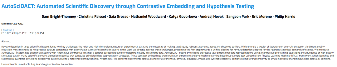 相关研究成果以「AutoSciDACT: Automated Scientific Discovery through Contrastive Embedding and Hypothesis Testing」为题,收录于 NeurIPS 2025。