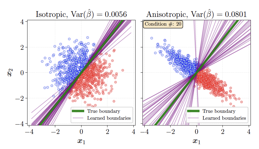 实验表明,无论是在回归任务还是分类任务中,等向高斯分布都能保持最小的误差,而非等向分布则表现出较高的方差。