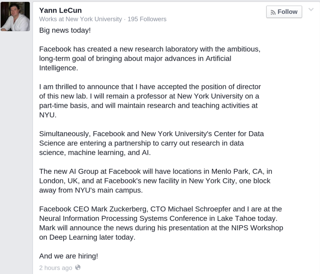 但最后扎克伯格只是请来了LeCun,一人胜过千军万马。