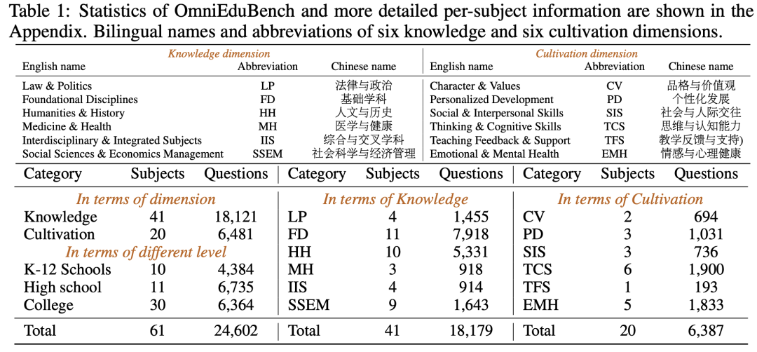 近日,来自华东师范大学的研究者们推出了OmniEduBench,一个专为评估中文大模型「综合教育素质」而设计的全新基准,包含24,602个高质量问答对。
