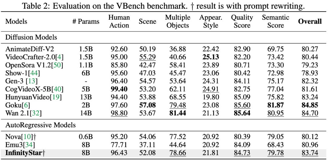 是首个在VBench上超越扩散模型的离散自回归视频生成器; 视频生成不用再“慢慢熬”:从百步去噪到自回归,告别延迟; - 任务通吃:文生图、文生视频、图生视频、交互式长视频生成等。