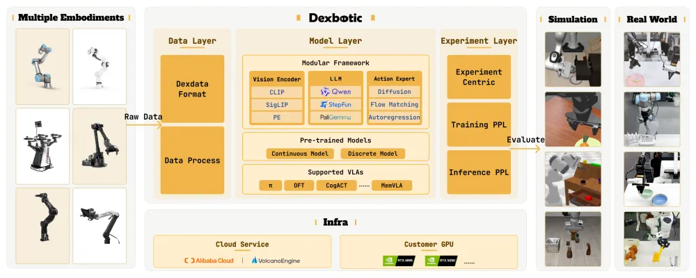 一句话概括,Dexbotic是给具身智能研究者用的一站式科研「工作台」。