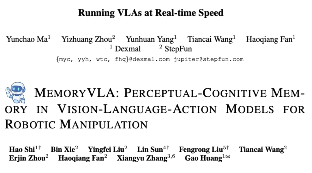 Real-time VLA与MemoryVLA,成功优化了机器人在实时与长时间工作方面的诟病。