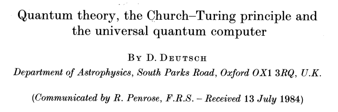 他是量子计算理论的早期提出者之一,1985年就发表了关于「量子图灵机」的论文(Quantum theory, the Church-Turing principle and the universal quantum computer),为之后的量子计算模型打下基础。