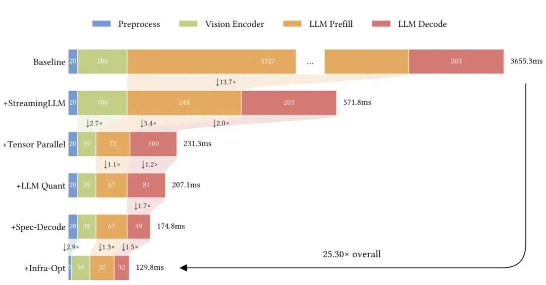 然后利用分阶段优化策略:流式LLM→张量并行→LLM量化→推测解码→基础设施优化,实现端到端延迟降至129.8ms。