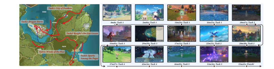 而对于一些更为复杂的长指令,只需要为Lumine提供清楚任务的先验信息或者任务步骤,Be like:切换角色为凯亚,不断释放E技能冻结水面,以收集前方浮在水面上的风神瞳。