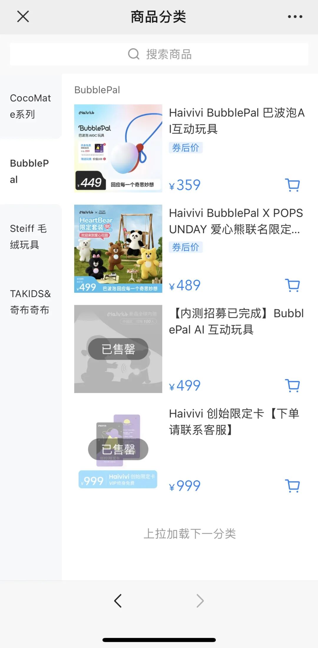 儿童线则继续聚焦毛绒玩具等成熟品类,因为这类产品本身就有群众基础,在用户心目中天然具备“灵魂”属性,只是传统产业做不到互动,AI技术能让这种潜在需求落地。
