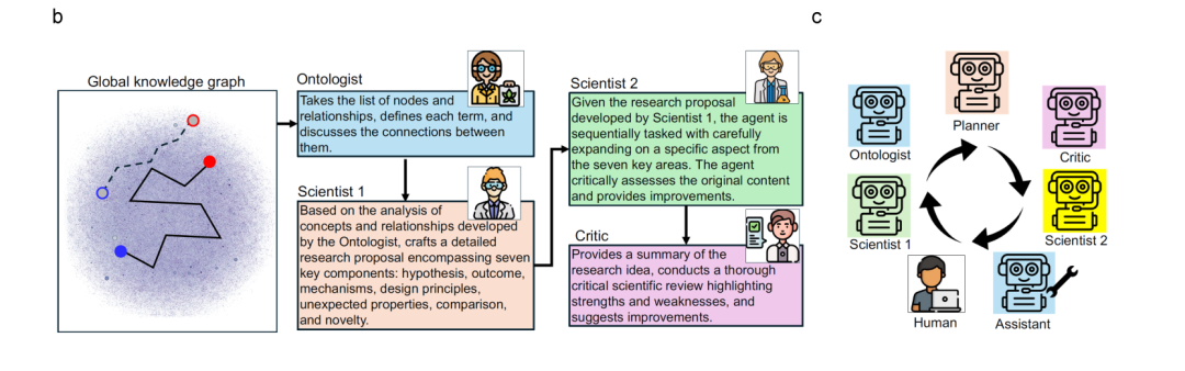 这类 AI 科学家不再依赖人类指导,而是由多个智能体协作完成从问题提出、假设生成、实验验证到论文撰写的完整科研闭环。人类科学家的角色更多转向提出宏观研究目标、验证结果与提供伦理审查。