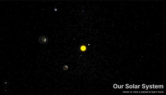 Gemini 3.0 Pro生成的行星、太阳系可视化3D模拟,根据调节实时变化,体验丝滑。