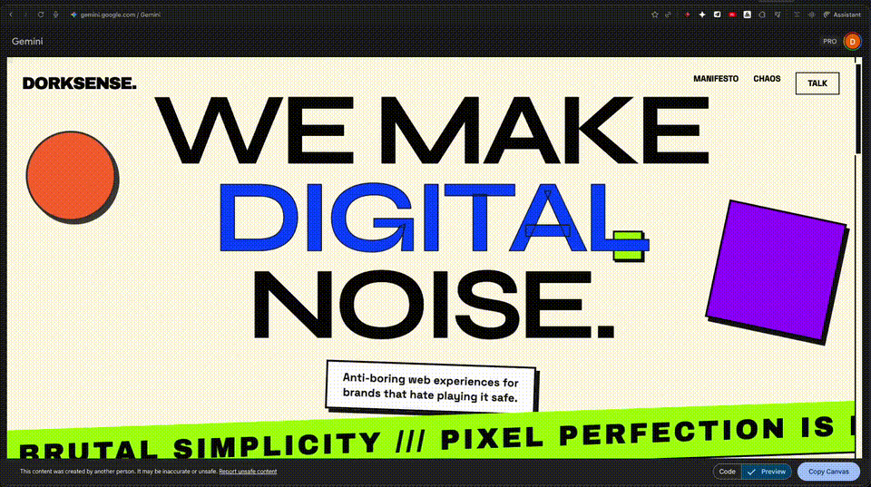 一句话直出「新粗野主义」风格的网页,Gemini 3.0的创意无限。