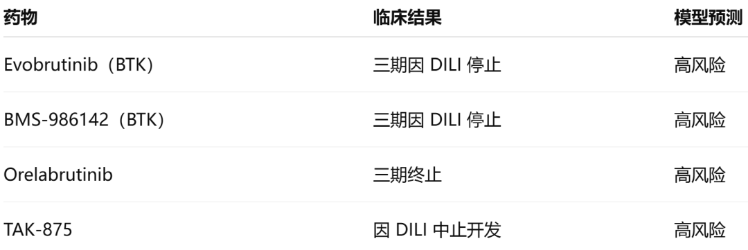 模型预测并成功“预警”多种临床失败药物:
