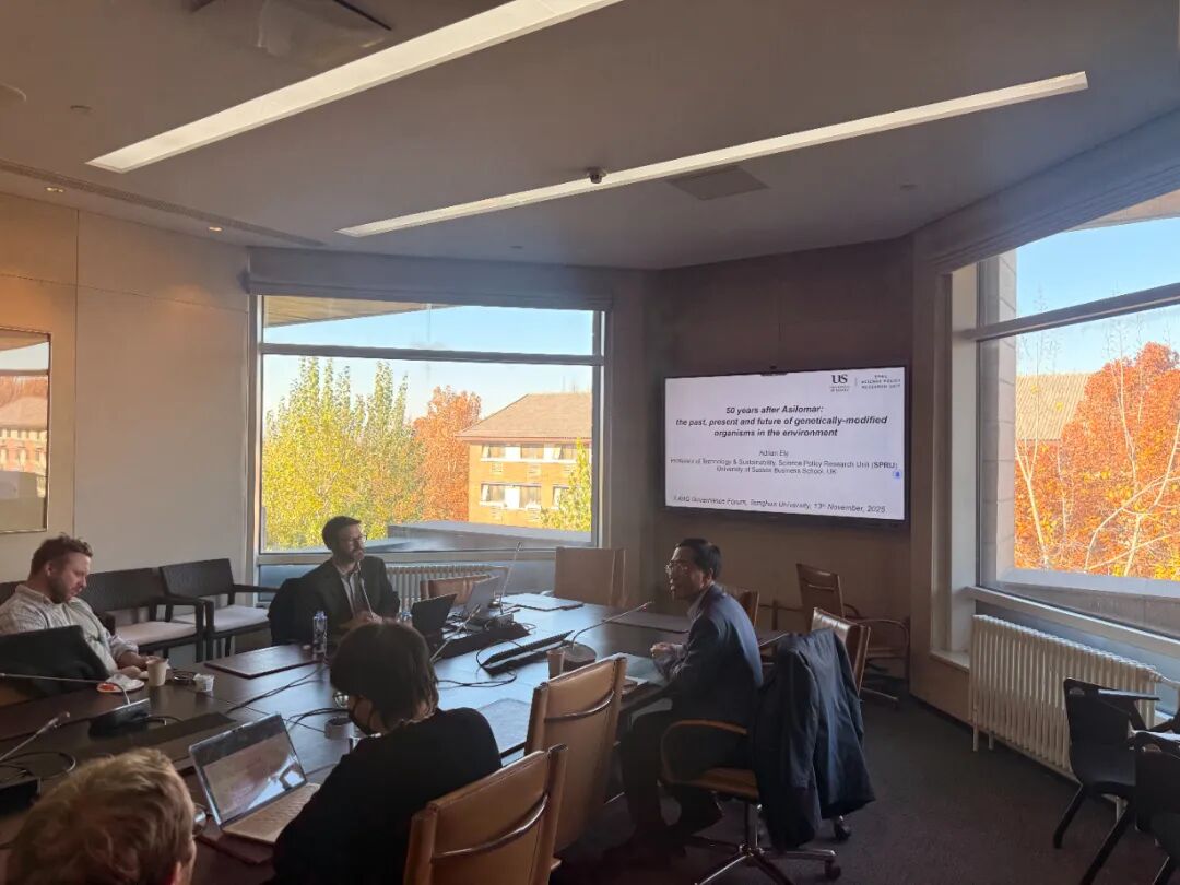 2025年11月13日下午,清华大学人工智能国际治理研究院(以下简称“研究院”)举办人工智能国际治理大讲堂第11期。本次大讲堂邀请来自英国萨塞克斯大学科学政策研究所(SPRU)技术与可持续发展教授、政策培训与高管教育主任 Adrian Ely,主题为“阿西洛马会议50年后:环境中转基因生物的过去、现在与未来”。研究院副院长梁正主持讲座。