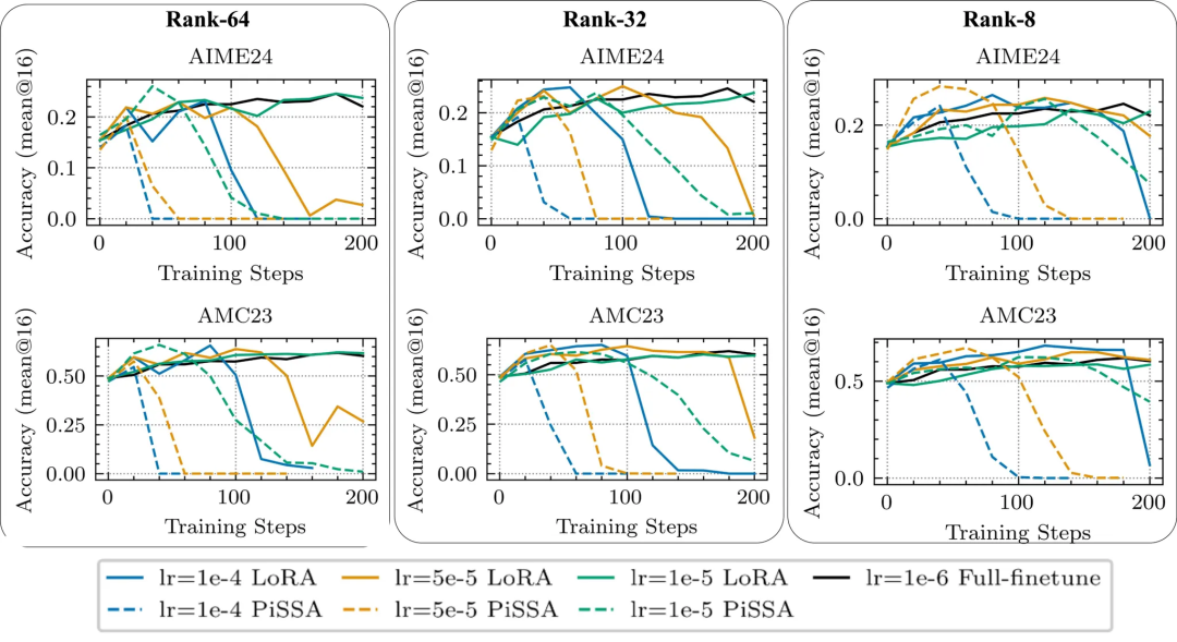 下图中,是LoRA与PiSSA在DS-Qwen-1.5B(DeepMath-103K)上的表现对比。