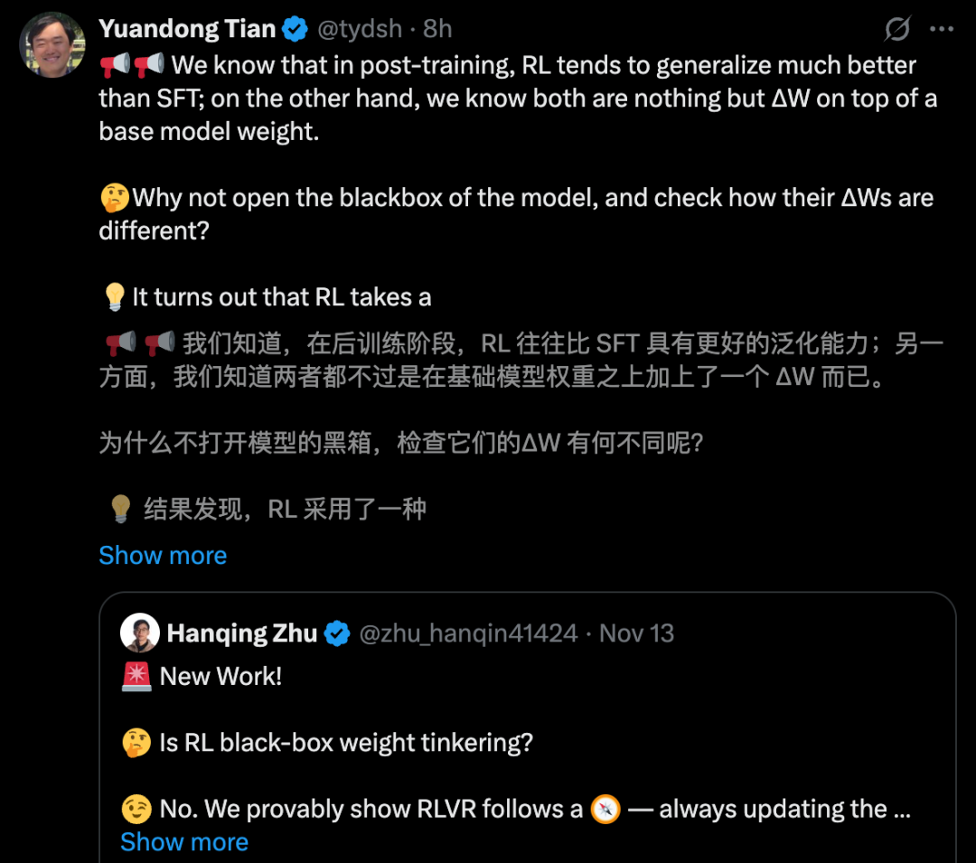 【新智元导读】离职Meta后,田渊栋团队最新论文放出了。他们提出的「三门理论」发现,RLVR微调只在小权重里发力,性能提升的同时又不破坏模型结构。