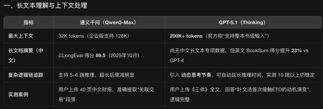 查找「千问与 GPT 5.1」 在具体任务(比如长文本理解、多模态、代码生成)上的对比评测,让我们一起看其优劣差距