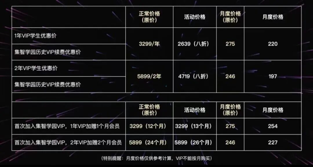 考虑到仍在学校读书的学生朋友们的需求,我们提供了年度VIP的八折优惠申请渠道,填写表单进行申请,填加VIP负责人微信进行开通。学生优惠包括在读的高中生、大学生、研究生、博士生。