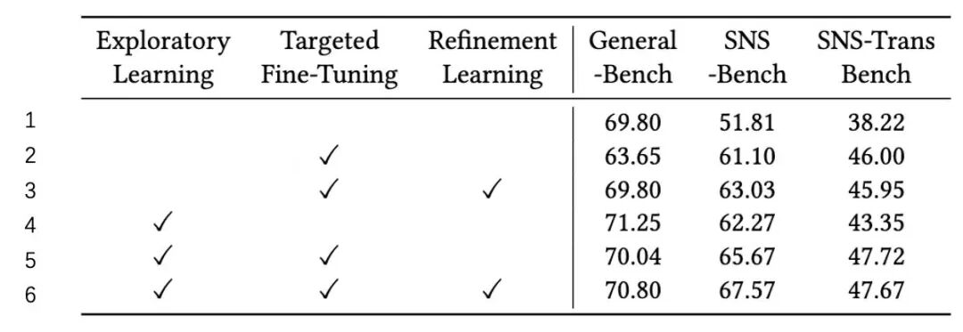 该方法通过主动探索、靶向微调和持续优化,实现模型能力在通用和SNS领域的一致提升,从根本上缓解SFT训练导致的性能失衡,并大幅降低对数据规模的需求。
