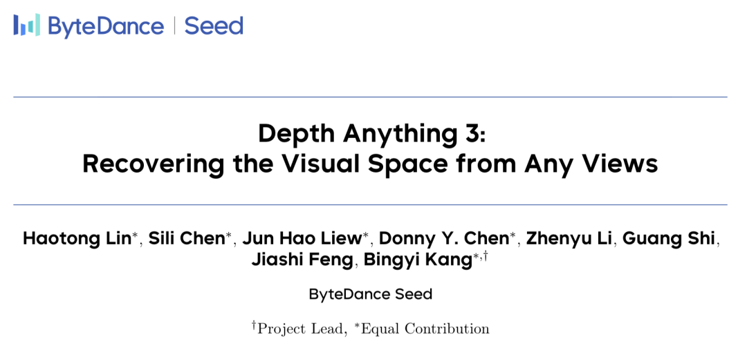 这是字节Seed康炳易团队带来的最新研究成果Depth Anything 3(下称DA3),获谢赛宁盛赞。