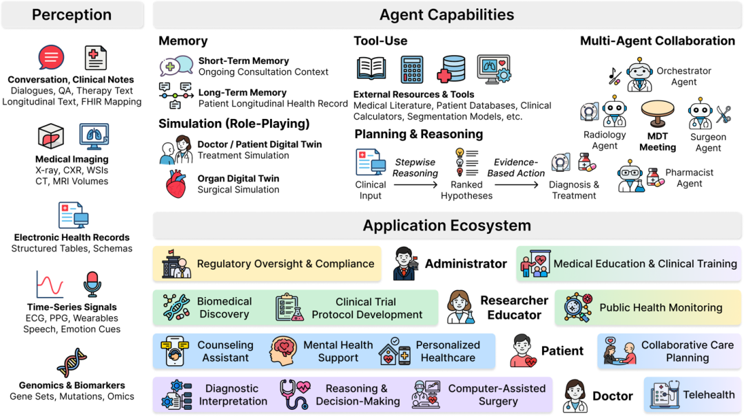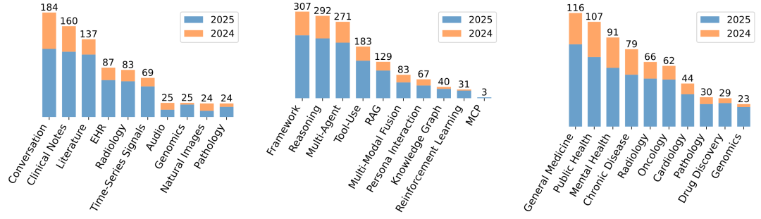 数据显示,截至2025年,相关论文数量已较2024年全年增长超过130%,这一爆发既得益于通用智能体、多模态基础模型和临床API等关键技术的成熟,也源于医疗场景中对高效、可解释AI工具的迫切需求。