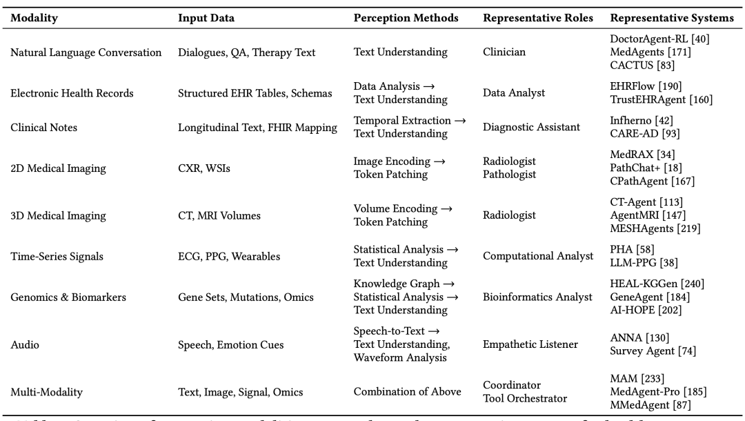 医疗智能体的感知模态、智能体角色与代表系统概览