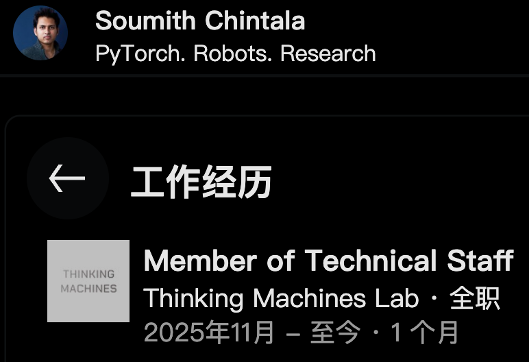 就在Soumith Chintala正式告别Meta、卸下「PyTorch之父」这一沉重皇冠的第二天,他的身影便出现在了Thinking Machines Lab(TML)的员工名单中。