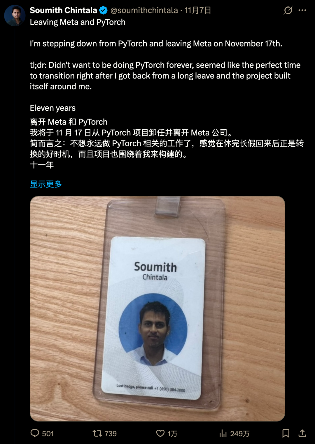 离职信全文拓展阅读:PyTorch之父闪电离职,AI半壁江山集体致敬!