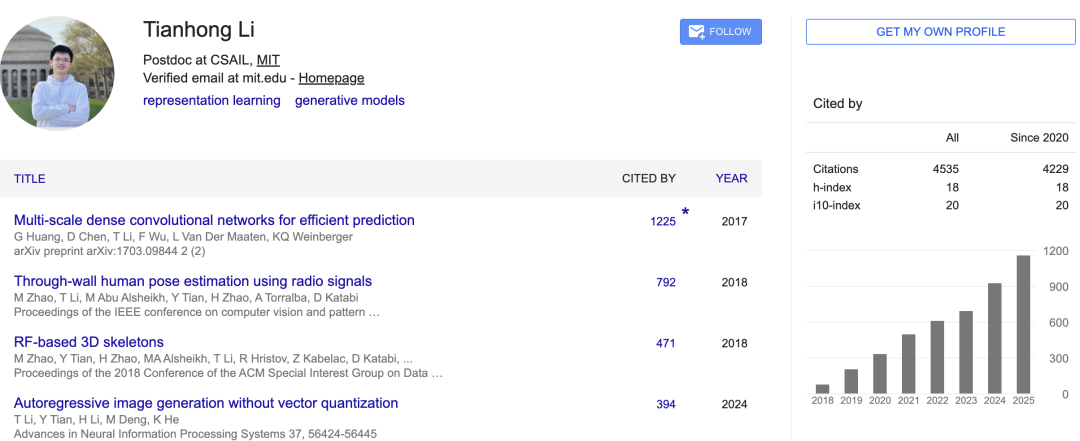 目前,他是麻省理工学院计算机科学与人工智能实验室(MIT CSAIL)的博士后研究员,导师是何恺明。