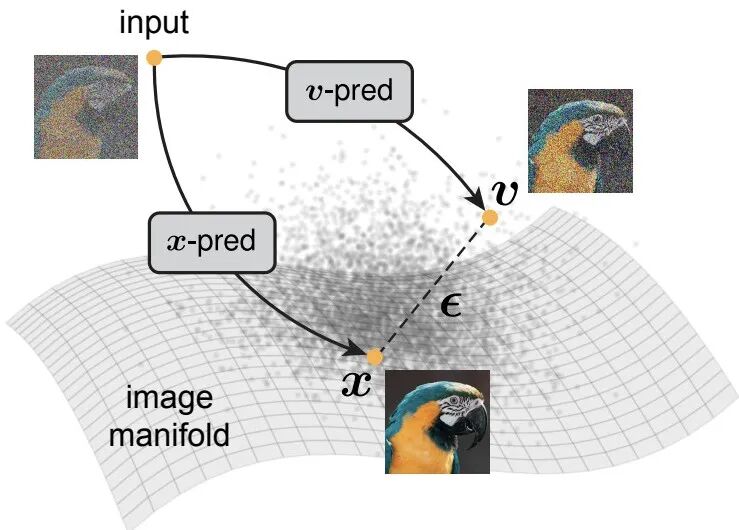 何恺明新研究的核心观点在于:预测干净数据和预测带噪数据,本质上截然不同。