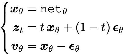 由于三者(x、ϵ、v)之间彼此依赖,只需设定一个网络输出,同时结合另外两个约束条件,即可推导出其余两个变量。