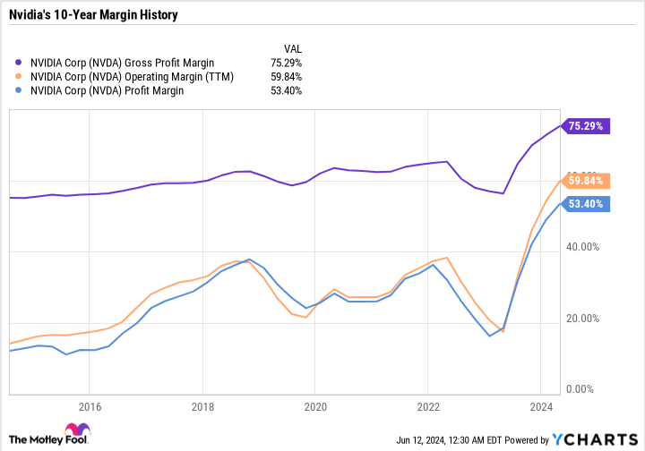 据FinanceCharts数据,英伟达最近12个月(截至2025年)毛利率约为69.8%。