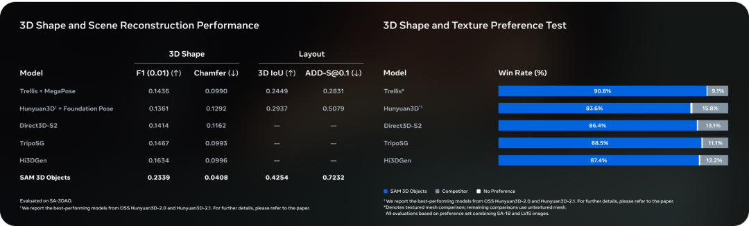 Meta 还与专业艺术家合作,构建了一个种类多样的 SAM 3D Artist Objects(SA-3DAO)数据集,其在性能上显著超越现有方法。