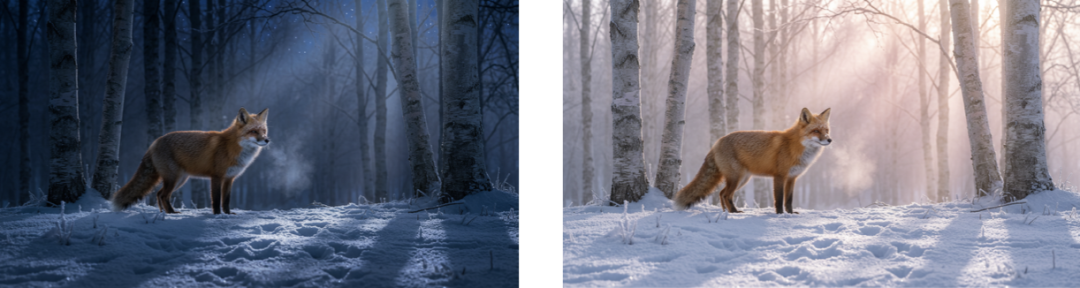另外,它还支持自由调整图像的光线、镜头、对焦、色彩调校等物理属性和构图: