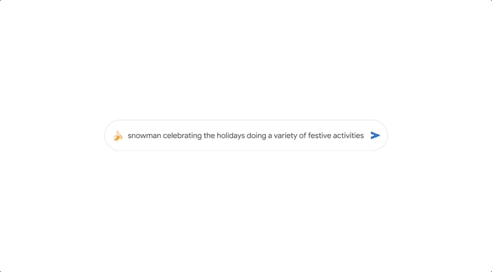 例如以雪人为核心角色,聚焦“节日庆祝”主题,在输入框中输入“snowman celebrating the holidays doing a variety of festive activities”(雪人庆祝节日,进行各种节日活动)。