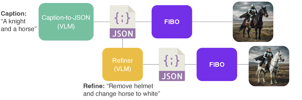 本文首次训练了一款基于长结构化描述的开源文本到图像模型 FIBO,其中每个训练样本均标注了相同的一组细粒度属性。该设计极大扩展了表达能力,并实现了对视觉因素的解耦控制。为高效处理长描述,研究人员提出 DimFusion 机制——一种无需增加 token 长度即可融合轻量级大语言模型(LLM)中间 token 的融合方法。