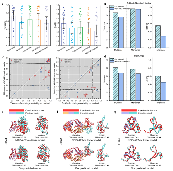 在人工智能驱动结构生物学发展的浪潮中,蛋白质复合物结构预测是一个关键且极具挑战性的交叉前沿研究问题。近日,我院张贵军教授团队与西湖大学工学院曾坚阳教授团队合作,在《Nature Communications》上发表了一项研究成果。该研究基于人工智能方法,从蛋白质序列中挖掘结构层面的互补性信息,构建了结构感知的复合物配对多序列比对信息,有效缓解了当前复合物结构建模中因“共进化信号缺失”所导致的预测精度不足问题。该方法在抗体-抗原复合物体系中的表现尤其突出。
