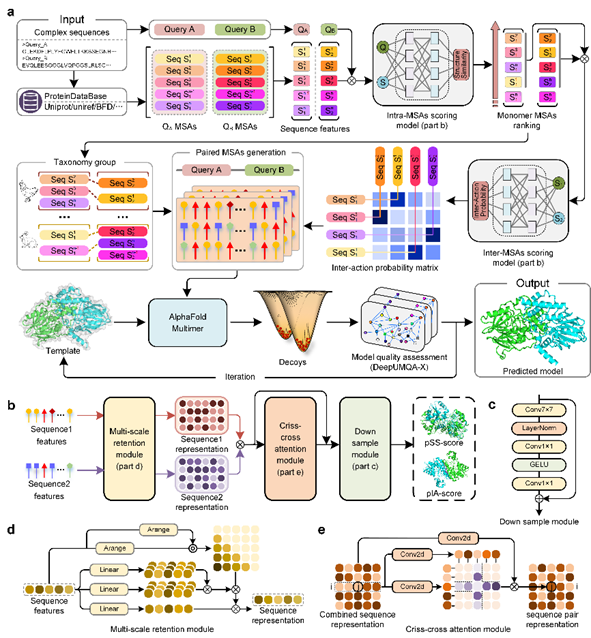 蛋白质结构预测作为高通量获取蛋白质三维构象的重要手段,是生物信息学领域长期面临的重要科学难题。近年来,随着人工智能技术与结构生物学的深度融合,该领域取得了突破性进展。以AlphaFold2为代表的端到端结构预测方法,实现了接近实验解析精度的蛋白质单链结构预测。然而,蛋白质并不是“孤岛”,其生理功能的执行普遍依赖于由多个蛋白质链相互作用形成的复合物。现有深度学习方法大多依赖于MSA所提供的共进化信息,而复合物MSA的构建困难导致链间共进化信息缺失,限制了结合界面与空间关系建模的准确性。