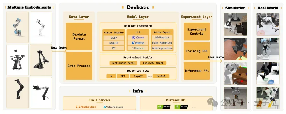 统一的模块化架构,让各种VLA方法能在同一个框架里跑;