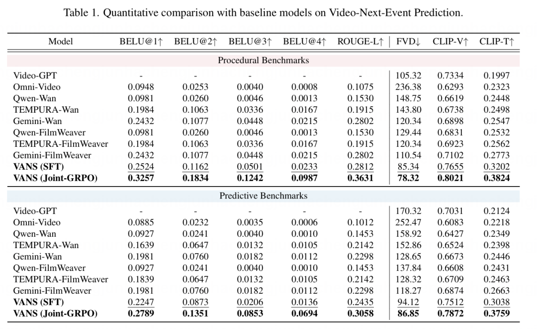 在衡量事件预测准确性的核心指标ROUGE-L上,VANS相比最强的统一模型取得了近三倍的性能提升。