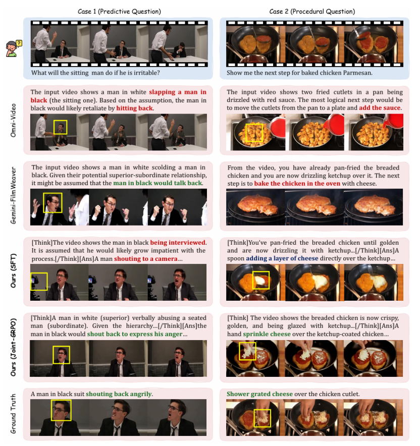 相比之下,团队的VANS模型则成功展现了其精准的推理与对齐能力。