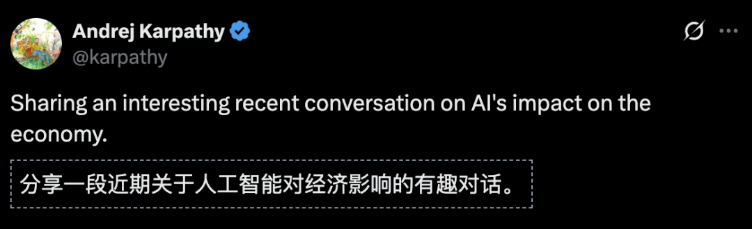 最近,Karpathy分享了关于AI对经济影响的有趣对话。
